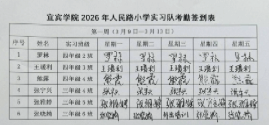 2026年3月9日,教师教育学院2027届小学教育专业实习生在牟洁老师带领下,进入人民路小学,开启为期12周的毕业实习。实习生们以严谨自律的态度快速融入校园,扎实开展各项实习工作。