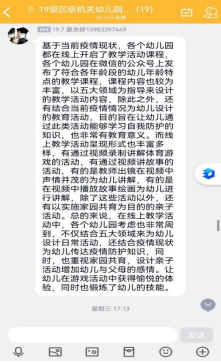 通过对幼儿园开展的各项活动的线上观摩,大家都积极的进行学习、总结和思考,并在群里分享了各自的收获和感悟。