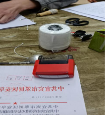 由于是年初,党政办工作任务繁多,所以我们三人被暂时留到了党政办,协助完成相应工作。我们接到的第一份任务就是对2021年的文件进行归档。整个流程包括四个环节:一是将去年一整年的文件进行问题文件筛选以及排序并根据发文处分类;二是装订流程,即将所有文件根据厚度进行分类,分为一孔和三孔,用打孔机打孔之后用线进行缝扎;三是将装订好的文件进行盖章并排序;四是将盖章并排序的文件录入系统并装入档案夹中。