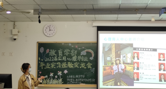 为了让同学们了解就业和工作的性质,明确自己的方向,教育学部于2022年4月16日14:30在三教楼202教室举行了2022届应用心理学专业毕业实习经验交流会。