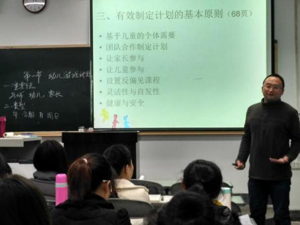 学前教育专业有4门核心课程。张国平老师的《幼儿游戏论》课程教学内容丰富多彩,结合国内外幼儿教育案例,幽默风趣;夏素荣老师的《幼儿教育心理学》课程教学内容丰富,知识点之间融会贯通,课堂生动有趣、富有吸引力;袁碧老师的《幼儿活动设计与组织》课程把知识点与生活实际相结合,通俗易懂;张亚娟老师的《学前教育学》课程教学生动、灵活、由浅入深,循序渐进。
