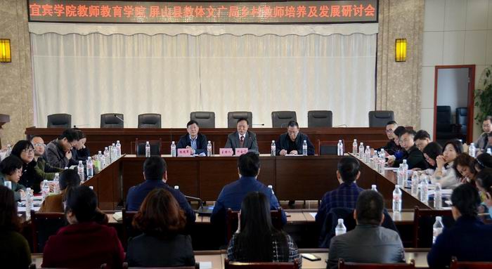 在屏山县国税局宽敞的会议室,县院开展了乡村教师培养及发展研讨座谈会。屏山县人民政府副县长聂学杰、教体文广局局长刘学逵、副局长熊太金及屏山县各类学校的领导代表、教师代表30余人与我院党政领导、教师42人就共同关心的乡村教师发展、乡村振兴人才需求、乡村教师专业成长、基础教育亟待解决的诸多问题等进行了广泛的交流和研讨。
