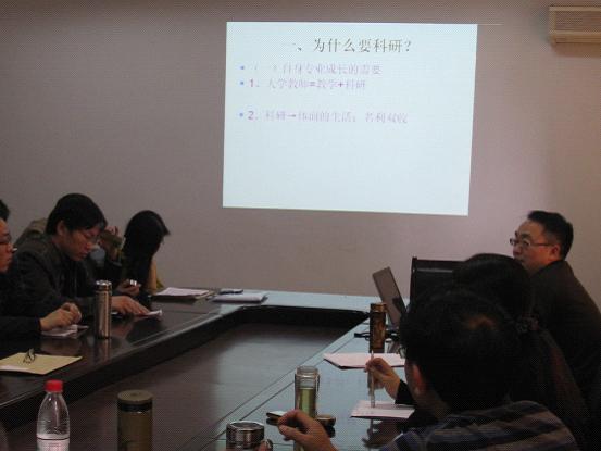 为丰富政治学习内容形式,把理论学习与业务学习紧密结合,进一步提升我院教职工科研能力,教师教育学院党总支特邀本院教师李尚卫教授于2012年4月11日下午在教师教育学院会议室进行的政治学习会上为全院教职工作了主题为《科研心得》的专题讲座。