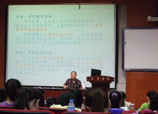 9月28日上午9点,在硕勋楼A座101学术报告厅,教师教育学院的师生与国培学员聆听了吴定初教授题为“从文化视角比较中国、北欧之学前教育”的讲座。吴教授给我们展示了北欧三国学前教育的现状与特点,对中国与北欧的学前教育进行了比较,并为学前专业的师生进行科学研究选题提出了宝贵的建议。吴教授在2个多小时的讲述中没有休息,他用洪亮的声音传达着丰富的学术信息。
