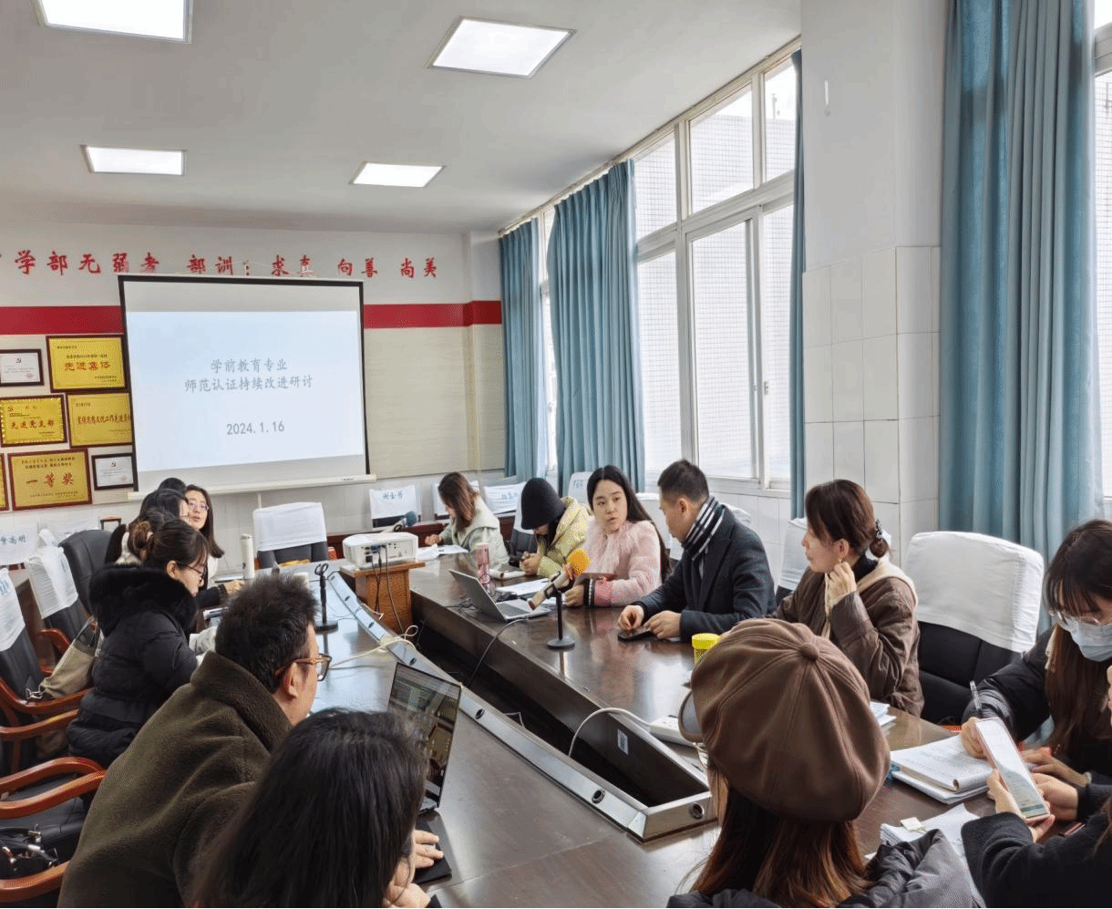 2024年1月16日,在博雅楼506召开了学前教育师范专业认证持续改进研讨会,教育学部副部长杜江、学前教育专业系主任梁运佳及学前教育专业全体专任教师参与了此次研讨。
