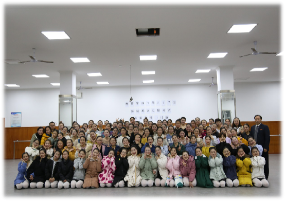 舞蹈汇报完毕师生整队,首先,叶静老师对本次汇报展示同学们的表现和不足之处作出了总结,对下学期的教学内容进行规划。其次,刘部长分享自身经历讲到:“跳舞就应该展示出我们的自信。”最后,何部长总结发言,肯定大家训练成果,表示看到同学们都在努力展现自己的风采而感到高兴。