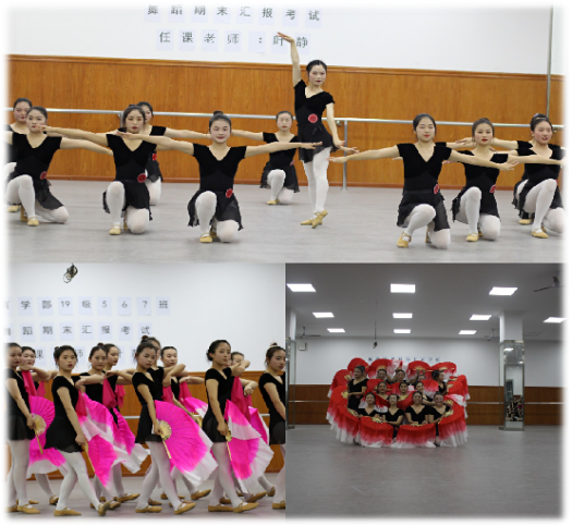 其次是本学期教学组合展示,舞姿训练主要是以藏族弦子舞和古典舞身韵地面动作主,民族舞的学习有助于培养学生爱国意识,了解民族文化;身韵训练是让同学们动作与呼吸配合,解决动作僵硬的问题;幼儿舞蹈学习为今后的编排积累素材。