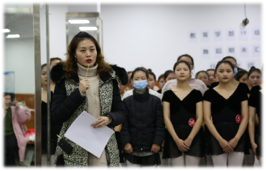 2021年1月7号教育学部19级5.6.7.班的同学迎来了本学期的舞蹈期末汇报考试。为了此次汇报展示同学做了疫情预案和疏散预案,对参加本次汇报考试的领导、老师、同学都进行了体温测量,汇报场地也进行了消毒。