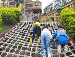 春天的气息飘满了整个幼儿园,小朋友们也在这样生机勃勃的春天里茁壮成长。本周幼儿园的主题活动是寻找春天。在中班集体教学活动中,我校实习教师袁泉用几张图片将春天呈现在小朋友的面前,所有的小朋友都沉醉在春日的景色里。随后在实习教师黄薪颖老师的带领下,小朋友们用卡纸制作相框,在幼儿园里搜集春天,并把春天紧紧锁在自己的纸上。大班老师带领小朋友们一边巡逻整个幼儿园观察春天的变化,下左图为小朋友通过攀爬,观察攀爬区周边的春天变化。