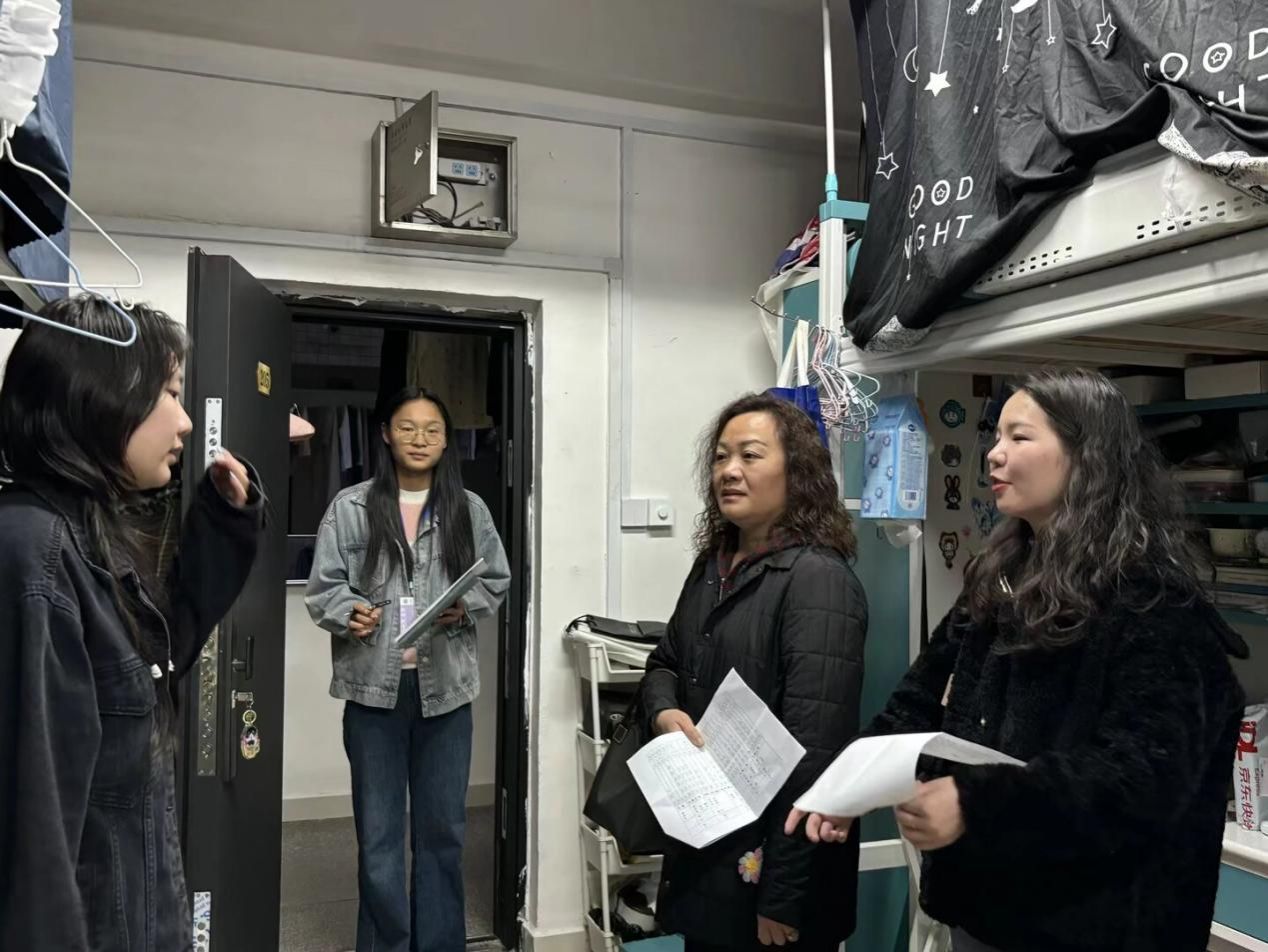 走访过程中,学院党委书记刘薪亲切询问学生的日常作息、学业进展及就业意向,耐心倾听大家在学业、生活和心理调适方面的实际需求。院长刘伟重点关注学生的职业发展与宿舍用电安全,强调规范意识的重要性,引导学生共同营造安全的校园环境。本次走访学生寝室177间,围绕学生宿舍卫生、就寝纪律及消防安全等方面,老师们与学生们展开亲切交流,现场解答大家提出的问题。