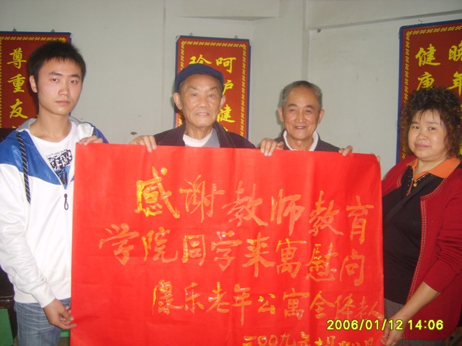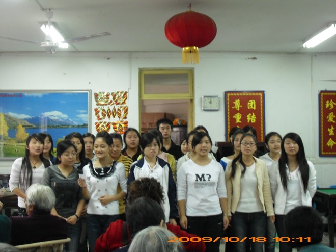 2009年10月18日上午9:00,由教师教育学院团总支学生会主办,院青年志愿者分队承办的“敬老,爱老”活动在江北康乐老年公寓举行。