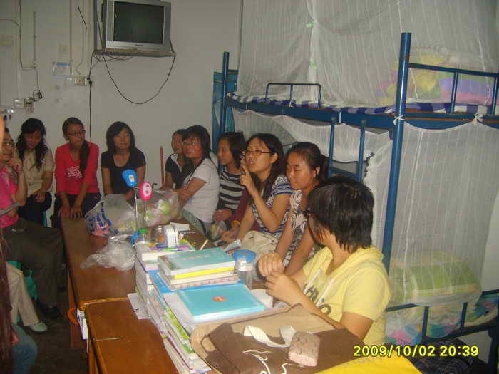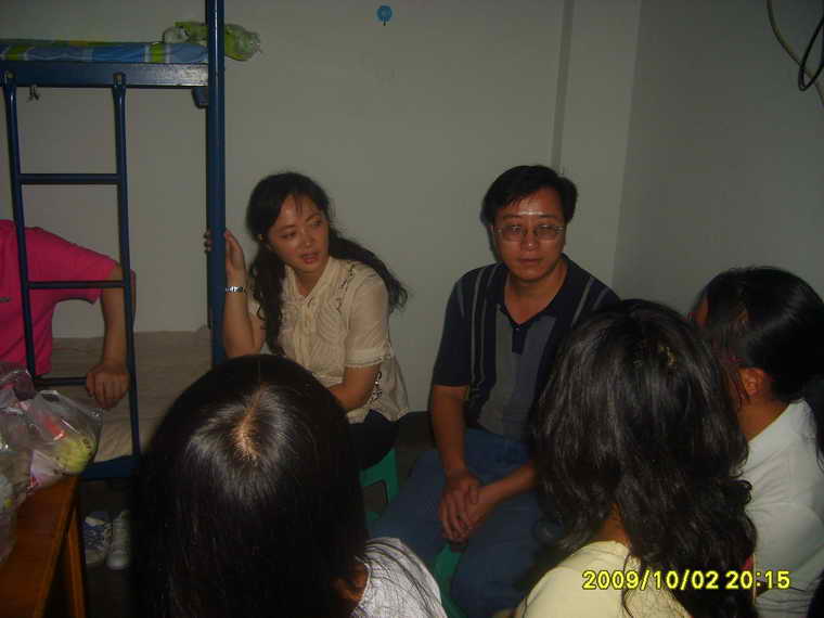2009年10月2日晚8点,在我院党总支书记邱宏老师的带领下,副院长李尚卫老师、团总支书记刘薪老师、党总支办公室副主任汪贻文老师和09级新生班班主任老师走访了大一新生寝室。
