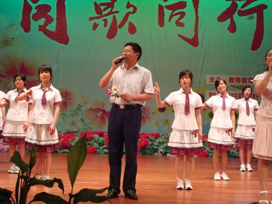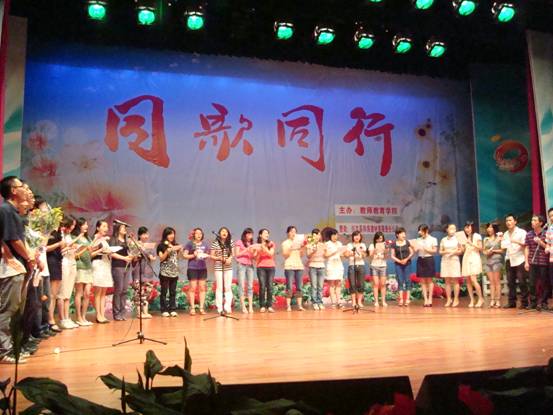 2010年6月20日晚上7:30,教师教育学院在我校三平台演播大厅隆重举办了以“同歌同行”为主题的欢送2010届毕业生晚会。此次晚会得到了兴文县和良建材有限责任公司的大力赞助。出席晚会的有宜宾学院党委副书记、教师教育学院院长刘维鸿教授、常务副院长杨随军副教授、党总支书记邱宏同志、党总支副书记赵政一教授、副院长李尚卫副教授、副院长何奎莲副教授、特邀嘉宾兴文县和良建材有限责任公司董事长古正文、副董事长李和远、总经理彭家虎以及我院全体师生共500余人。