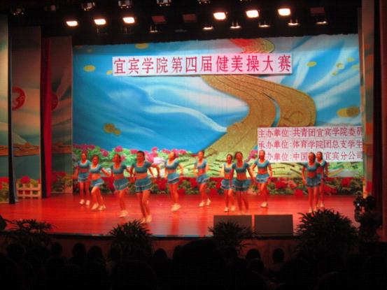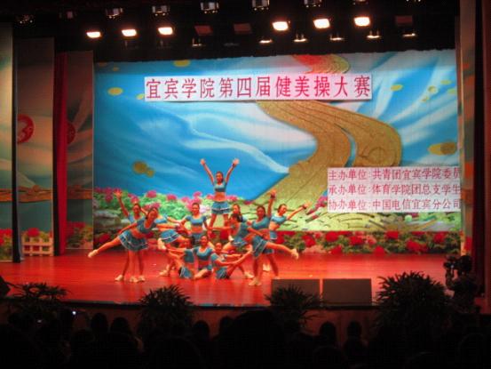 2010年11月26日晚7:30,由宜宾学院共青团主办,体育学院团总支学生会承办,中国电信宜宾分公司协办的宜宾学院第四届健美操大赛暨宜宾市大中专健美操大赛预选赛在宜宾学院演播大厅举行。我校党委副书记刘维鸿教授、副校长毛克强教授、团委书记罗先凤副教授及体育学院部分领导作为评委出席了此次大赛。