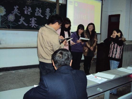 2010年11月21日晚上7:30,由教师教育学院主办的英语故事大赛在一教楼202教室如期举行。英语专家顾兴梁副教授、王新珠老师、院团总支书记刘薪老师、专职辅导员郑春老师作为评委出席了此次比赛。