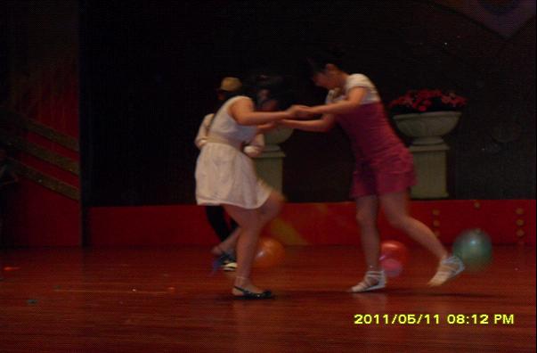 首先,歌曲弹唱《找自己》为本次晚会作了开场秀。接着,主持人致辞,并将同学们分为两队,进行互动。至此,本场晚会正式开始,一系列优秀的节目不断上映着。教师教育学院带来的合唱《茉莉花》婉转绵长,教师教育学院和文新学院共同演绎的拉丁舞精彩纷呈。动人的音乐,完美的体型,舞出了这充满浪漫,充满激情同时又令人快乐的拉丁。这一段激情的舞蹈赢来观众们热烈的掌声,使晚会达到了一个小高潮。游戏环节 “踩气球,赢奖品”,使晚会进入另一个高潮。场上选手全力以赴想要踩爆对方的气球,台下观众则是笑声不断,掌声不断。由教师教学院学前专业的姑娘们带来的幼儿舞《Hello Baby》是最有特色的节目之一。这一群姑娘们跳出了他们的青春与活力,也展现了幼儿舞蹈本身的可爱与魅力。