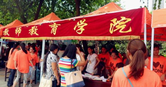 在党总支书记邱宏老师,副书记赵政一老师,学生辅导员王会老师,郑春老师以及新生班班主任汪贻文老师,程婷老师,巫晓娟老师的带领下,教师教育学院的迎新志愿者们身着橙色志愿服,用饱满的热情和灿烂的笑容迎接着来自全国各地的新同学们。