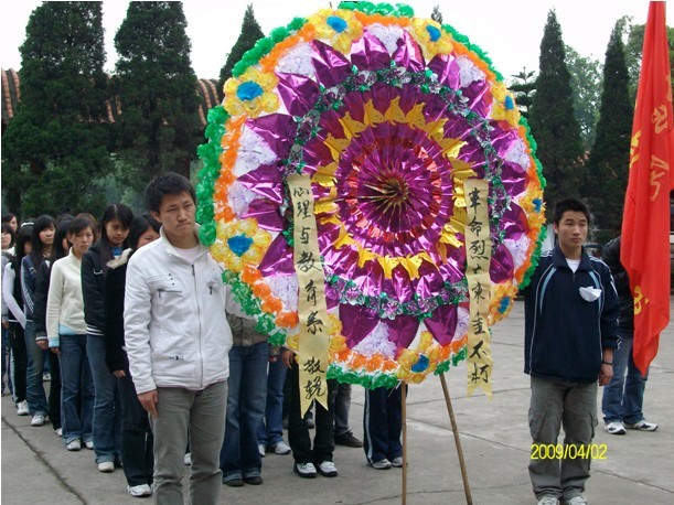 四月二日,天气微朗,心教系青年志愿者队组织本部门干事、系干部代表及第十六期入党积极份子前往江北公园的烈士陵园开展了清明节为烈士扫墓活动。此次活动于当日12:40开始,所有参与人员在学校旗台集合后统一前往活动目的地。在途中,大家都很遵守组织纪律,展现了良好精神面貌。在到达江北公园后,大家先在公园门口重新整合了队伍,并全部佩戴上了白花,所有人员表情肃穆。