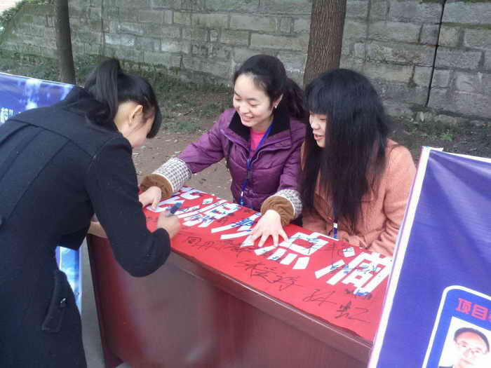 2014年3月13日上午9:00开始举行“保护水环境”签名活动,让同学们为保护水环境表达自己的一份心意。紧接着14日,宜宾学院教师教育学院青年志愿者队组织志愿者深入街道社区进行宣传,鼓励广大群众一起加入保护水环境的行列。从生活出发,出小事做起,我们相信只要人人都节约一滴水,世界将有更多新鲜纯净的水。
