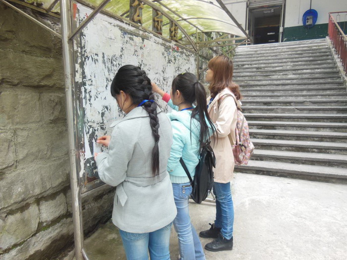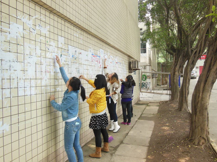 为了规范校园墙壁上的各种宣传广告的乱张贴行为,让广大学子能有一个干净、整洁、的校园环境,教师教育学院青年志愿者服务队于2014年3月12日星期三中午12:30分,开始对东苑餐厅和南苑餐厅外围进行义务打扫,清除乱张贴的广告单和地上的垃圾。