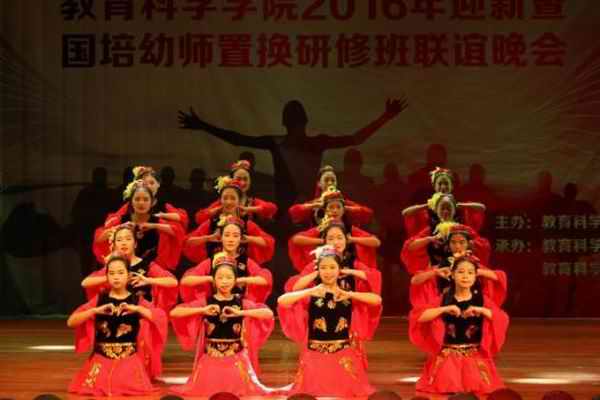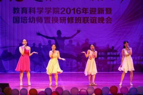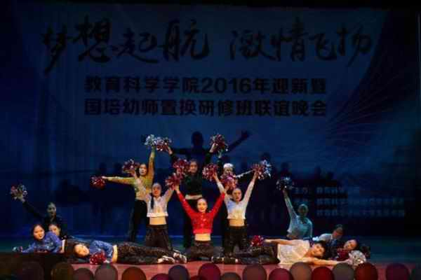 一首《光辉岁月》,为迎新晚会拉开了帷幕。随后何会宁院长上台致欢迎辞,他热情欢迎2016级新同学加入教育科学学院这个团结温馨、奋发向上的大家庭,他指出——培养学生的责任心、感恩之心以及信仰是教育的根本任务,当前我院正在开展的“三练”和“三敬”活动,其目的在于让我们锻炼身体,锻炼意志,锻炼技能。晚会开始,跟随动感十足的音乐,舞蹈《PUSH》带我们进入了一个节奏的狂欢盛宴;小合唱《童年+明天会更好》童年的气息与对未来的希望相互交织,让人感慨万千;舞蹈《水调歌头》红色的古服与纯洁的白衣共舞,诗与歌的相互重叠;诗朗诵《颂长征》让人热血沸腾,仿佛回到了那个艰苦且发人深思的年代。舞蹈《舞起幸福鼓》将维吾尔族的民族风情展现的淋漓尽致,带我们走进了一片新的天地;伴着欢快的音乐,风格多变的走秀节目《魅力青春》带给我们一场闪眼的大餐,袅娜的背影,帅气的造型无一不表现出年轻人的靓丽身姿;歌曲《戏曲联唱》韵味十足,耳熟能详的古典戏剧重回了我们的身边。《采薇》将古典舞与书法相互结合,在翩翩舞姿中,曾德宏老师和学生挥洒笔墨写下了“尊师重教”几个刚劲有力的大字。随后的歌曲串烧,再次带动起了现场的活跃气氛,轻松欢快的小品《超级大学生》引得场上欢笑连连。舞蹈《shake it》动感十足,充满了青春的朝气。最后国培幼师研修班学员们为带来的一首大合唱《明天会更好》,本次迎新晚到此便圆满结束了。