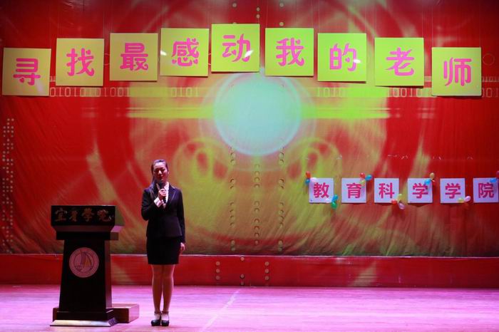 “寻找最感动我的老师”是教育科学学院自2015年起,在全院学生中开展的以“信仰教育、感恩教育、责任教育”三大教育为抓手的教育活动之一,通过这个活动,让同学们从中真切地去体会“师德”、表达“感恩”,让同学们在感动之余重新去思考了作为一名教师所应该具有的高尚品格,更深层次的去认知老师这个神圣的职业,坚定从教信念。