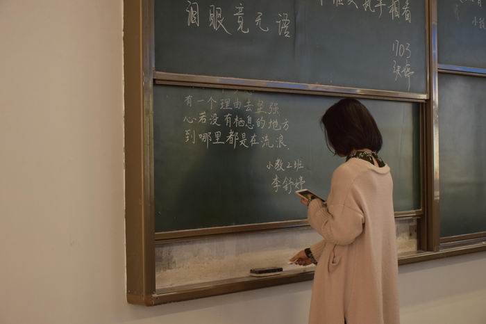 本次比赛分为现场组和非现场组。非现场组作品主要为硬笔和软笔,同学们自选篇目,以书写中华经典诗文为主要内容再上交相关组织单位。现场组即为现场书写粉笔字。