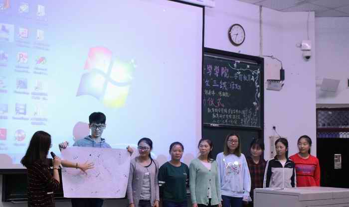 随后,各专业在老师的指导下分教室开展团队建设活动。同学们按照分组,结合专业及自身小组成员特点设计本队的队名、队歌、队徽、口号,设置队长、意志监督员、书法训练员、英语训练员、钢琴训练员、舞蹈训练员等。随后,各小组依次上台进行团队展示。