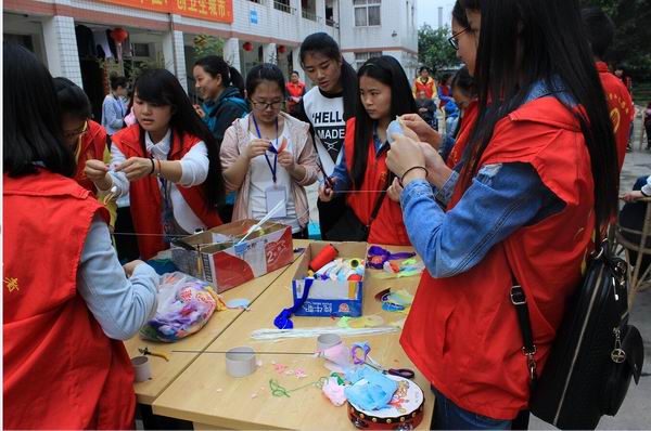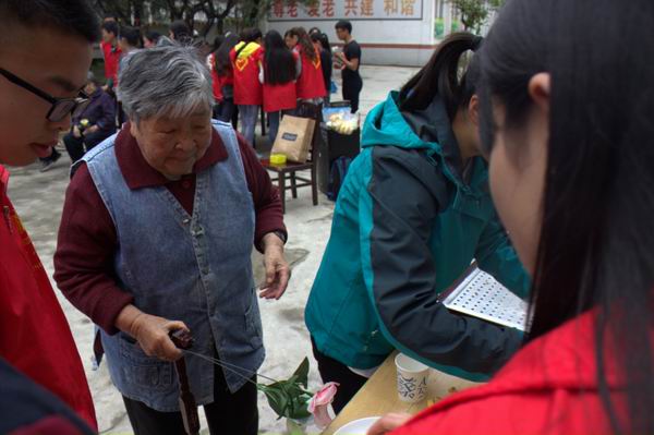 早早的青队成员们便在一平台旗台处集合,清点人数后整装待发,大约9:30左右顺利到达福利院,在和相关负责人取得联系后,便开始分工合作。先去把家里的老人请出来,然后大家围成一个小半圆观看比赛,比赛形式可是丰富多彩的,主持人让老人们抽奖表演节目,比如:小苹果舞蹈,歌唱红歌,武术操等,而教科院的妹子们则教大家叠丝网花,并把丝网花作为礼物送给老人孩子们;同时有请老人们吃香蕉,还进行包饺子活动,接近中午时,还把老人们护送回家,然后把饺子放到厨房,让老人和孩子们共享。