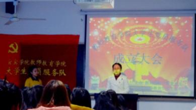为了深入贯彻落实党的十八大精神,按照中央关于加大大学生思想政治工作的要求,加强大学生党员的培养教育工作,提高学生党员的思想觉悟和政治素养,增强学生党员的服务能力,充分发挥我院学生党员的先锋模范作用,永葆党员先进性,培养新一代优秀大学生党员。特值此“十八大”胜利闭幕之时,2012年11月28日,宜宾学院教师教育学院于一教205召开了“宜宾学院教师教育学院大学生党员服务队”成立大会。参加此次大会的有教师教育学院党总支书记邱宏老师,党总支副书记赵政一老师,办公室副主任汪贻文老师,学生工作办公室郑春老师,王会老师,以及42名学生党员和部分入党积极分子。