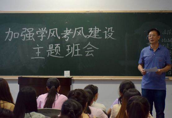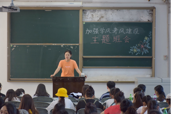 各班辅导员向同学们宣讲何为“学风”,何为“考风”,并强调加强“两风”建设的重要性和必要性,指出学生要规范自己,班级要有严明的纪律,浓厚的学习氛围和正确的舆论,要求同学们一定要严肃考风考纪,端正学习态度,告诫他们一定要诚信考试,并以往届学生因违反考纪而受到严肃处理的案例时刻警醒自己,不可触犯红线,造成无法挽回的后果。与此同时,各位辅导员也提醒同学们即使是在酷暑下也要好好复习,查漏补缺,争取在期末考出自己的真实水平,考出自己满意的成绩。