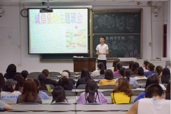 为进一步做好学生资助工作,强化学生对诚信的认识和理解,让同学们养成“诚信做人,诚信做事、诚信还贷”的好习惯。2019年6月9日下午,教育科学学院各班辅导员利用晚点名时间开展了“诚信资助”和“科学健康减肥”的主题班会。