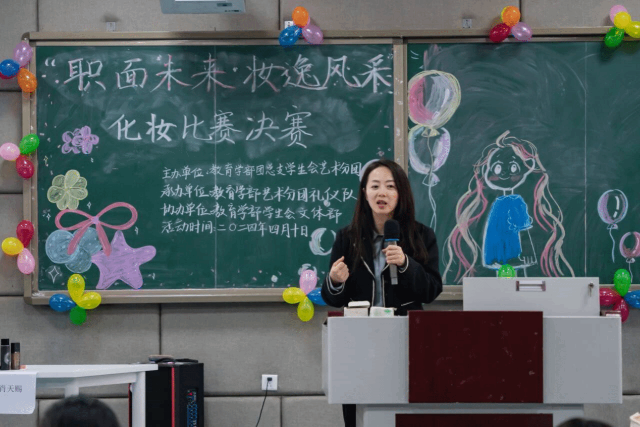比赛伊始,刘薪在致辞中指出,精致的妆容不仅可以展现教育者的精气神,是个人形象与职业特点的重要载体,强调了良好的职业形象在求职应聘中的重要性。
