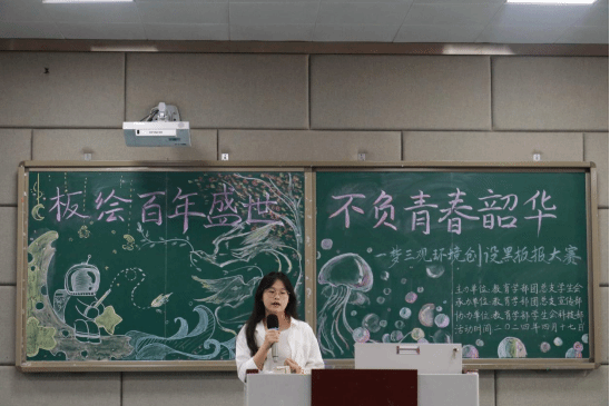 在点评中,杨云云高度赞赏了选手们的出色表现,并针对上台演说技巧和内容展示方面提出了宝贵建议。她特别指出,黑板报设计兼具教育性、艺术性和创造性,其中创造性尤为关键,是激发设计灵感、吸引观众目光的核心要素。最后,她鼓励同学们在台上自信展现,并在日后的学习生活中不断锻炼创新思维与实践能力。