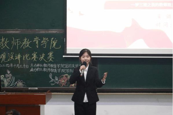 为积极响应培养国家新时代师范生的号召,深入推动师范生基本技能与素质的提升,树立崇高的教育理想,展现当代师范生的精神风貌和理想追求,10月30日,教师教育学院于硕勋楼B102开展以“一梦三观之我的教师梦”为主题的演讲比赛。教师教育学院团总支书记唐辉、辅导员王勤、杨云云、许其鑫、李璐、团总支副书记陈舒妃、学生会主席高光琴、周琴、艺术分团团长刘艺瑾出席本次活动并担任评委。