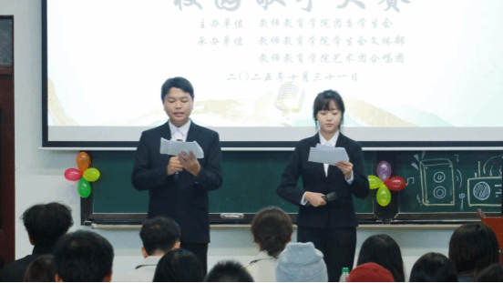 为全面贯彻素质教育理念,丰富校园文化生活,营造积极向上的校园艺术氛围,10月31日,教师教育学院于硕勋楼A102、A103开展主题为“声动校园·音为梦想”的校园歌手大赛。教师教育学院党委副书记唐辉,学工办主任、团委书记沈文静,艺术团指导老师马辽,辅导员杨云云、李佳欣及团委学生会艺术分团主席、艺术分团主要干部担任评委。