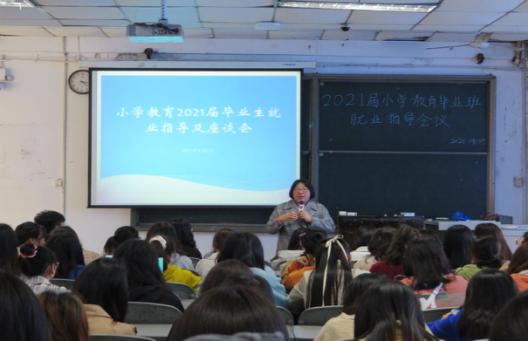 为进一步推动毕业生就业工作,帮助学生了解就业形势、转变就业观念、增强择业意识、提升就业能力,促进充分就业,2021年4月5日下午16:00教育学部在一教202举办了“小学教育2021届毕业生就业指导及座谈会”,党总支副书记刘薪、小学教育教研室主任吴洪、毕业班辅导员杨云云老师参加了此次座谈会。