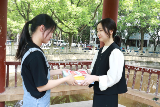“心之所向,永成芳华”,考研是学子们追求更高理想的途径和阶梯,为积极鼓励并帮助2019级考研学子,2022年4月13日,宜宾学院教育学部在二平台荷花池旁举办了考研资料赠送活动。