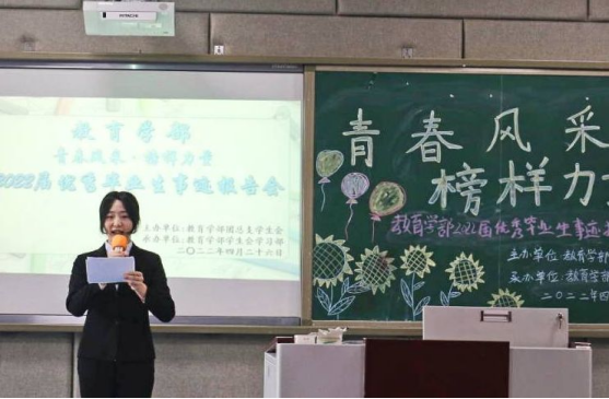 为教育和引导广大学生积极学习优秀学生的良好学习经验和精神品质,充分发挥优秀毕业生典型示范和榜样作用,教育学部于2022年4月26日中午在博雅楼B201开展了2022届优秀毕业生事迹报告会。教育学部党总支副书记刘薪、毕业班辅导员及大一新生80余人参加了本次会议。
