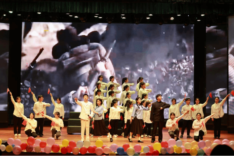 晚会在火热的开场舞中拉开帷幕,共分为“恰同学少年”、“秉初心不变”、“续薪火之光”三个篇章。同学们灵动的舞姿,真情的歌声,铿锵的朗诵,生动的舞台剧、小品,赢得现场一阵阵热烈掌声和欢呼声。