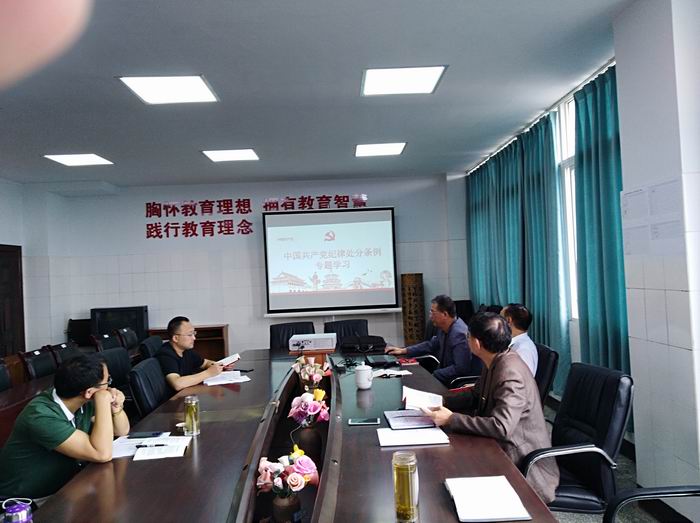 9月28日上午,教育科学学院党总支在本院会议室(艺术楼B座506)召开中心组理论学习扩大会,专题学习《中国共产党纪律处分条例》,总支委员、副科以上干部、党支部书记参加学习会。学习会由党总支书记杨随军主持。