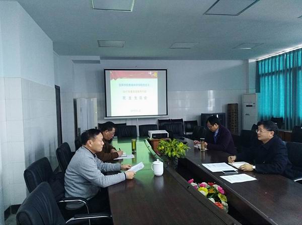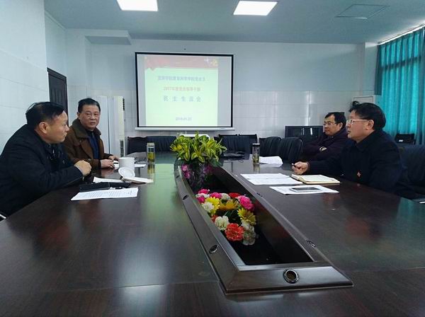 1月22日上午,教育科学学院党总支在本院会议室(艺术楼B座506)召开2017年度党员领导干部民主生活会。会议由党总支书记杨随军主持,领导班子成员何会宁(院长、总支青年委员)、赵政一(党总支副书记,总支纪检委员)、李伟(总支统战宣传委员)参会。