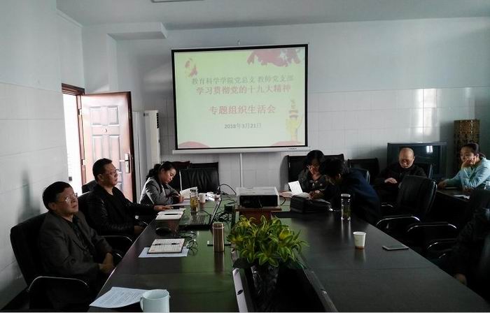 3月21日下午,我院教师党支部在会议室召开了学习贯彻党的十九大精神专题组织生活会,全体党员同志参加了此次会议,会议由教师党支部书记张国平主持。