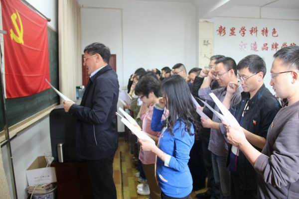 上午11:00,教师党支部书记(党总支书记)杨随军同志带领与会教职工党员佩戴党徽,在党旗下重温了入党志愿与誓词。随后,与会党员纷纷对照入党志愿谈信念、谈理想,对照入党誓词找标准、找差距,表示要以对党的忠诚和信仰来实践对党章党规的坚决维护,特别是深深地表达了对党的爱戴之情,并表态要坚决发挥模范带头作用,做好表率,充分表达了爱党、信党、护党、跟党走的坚定信仰。