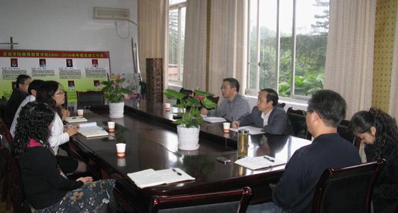 2010年10月12日上午,校党委组织部副部长易炳平、正处级调研员廖联奎到教师教育学院开展创先争优活动调研工作,在教师教育学院会议室主持召开了创先争优活动调研座谈会。教师教育学院创先争优活动领导小组成员党总支书记、创先争优活动小组组长邱宏,常务副院长、创先争优活动小组组长杨随军,党总支副书记、创先争优活动小组副组长赵政一,副院长、创先争优活动小组副组长李尚卫,培训认证科科长、教师党支部委员邓玲,团总支书记、08、09、10级学生联合党支部书记刘薪,办公室副主任、创先争优活动小组联络员汪贻文参加了座谈会。