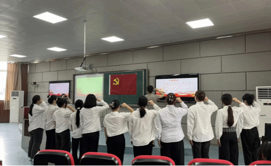 随后,在沈文静老师的带领下,全体新党员在党旗下进行庄严的入党宣誓。坚定而有力的誓言字字句句凝结着对党的赤诚忠心,彰显着为党的事业无私奉献的崇高信念。