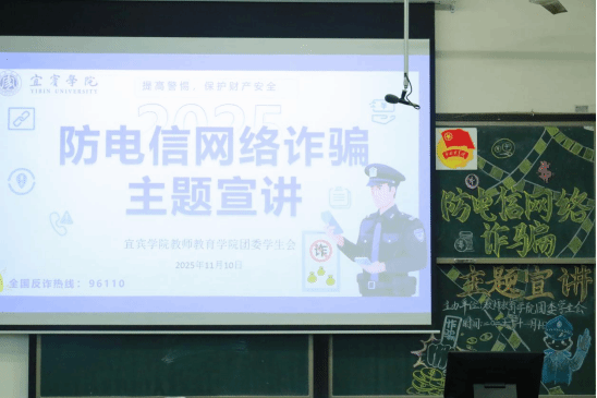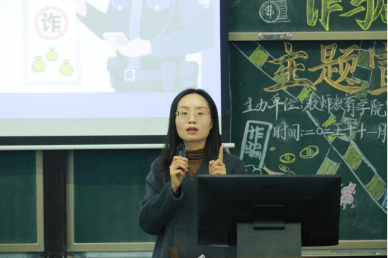 11月10日,教师教育学院于三教A202开展防诈骗主题宣讲活动。教师教育学院学工办副主任、团委副书记王勤,辅导员杨云云、李佳欣、李先焰及150位同学共同参加了此次防电信网络诈骗主题宣讲活动。本次宣讲活动以防诈知识、骗局拆解和防诈技巧为核心,全方位普及防诈知识。