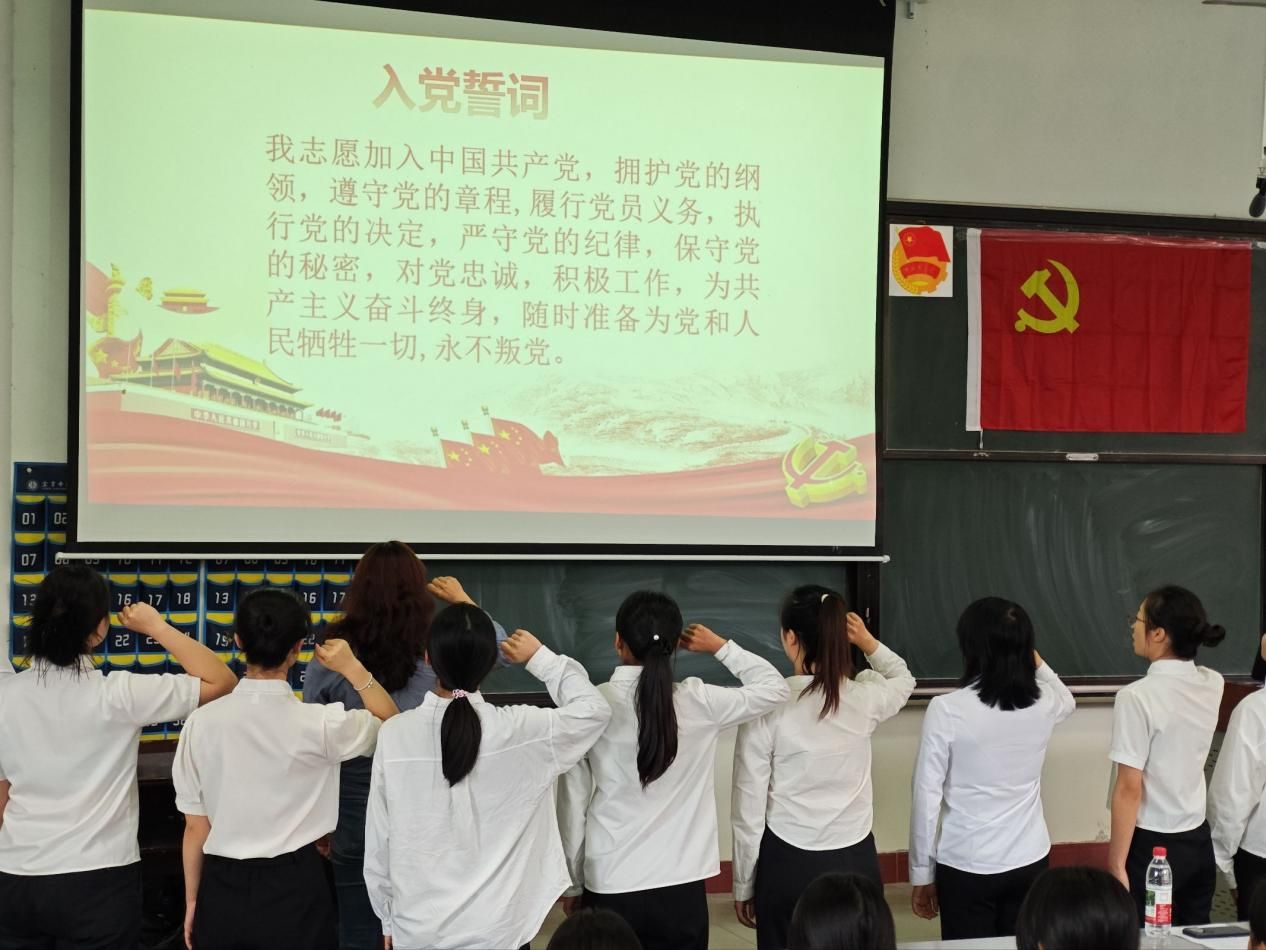 在沈文静老师的带领下,全体新党员举起右拳,庄严宣誓。铿锵有力的誓言饱含着新党员们对党的无限忠诚与坚定信仰,彰显出新一代共产党人矢志不渝、砥砺前行的责任担当。