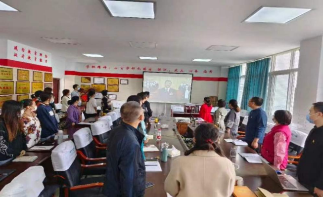 10月16日上午10时,举世瞩目的中国共产党第二十次全国代表大会在北京人民大会堂隆重开幕。教育学部党总支组织学部党员干部、党支部书记及师生代表在博雅楼B506会议室集中收看中国共产党第二十次全国代表大会开幕会现场直播盛况,其余教师通过腾讯会议收看直播,一起聆听学习习近平总书记所作的报告。