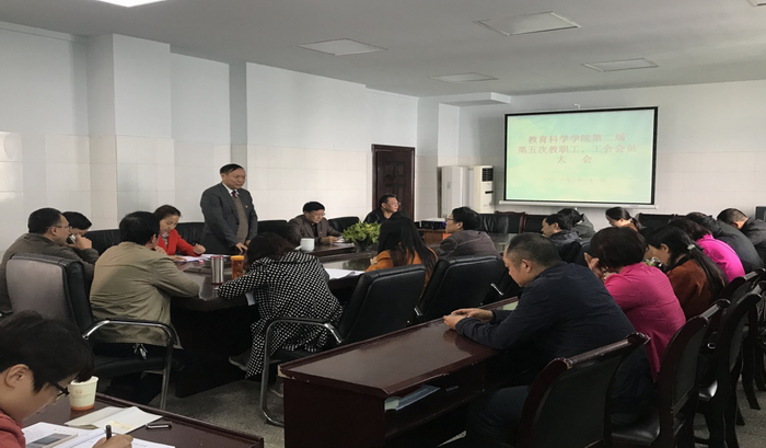 2018年3月21日下午14:30,宜宾学院教育科学学院第二届第五次教职工暨工会会员大会在艺术楼教育科学学院会议室举行,教育科学学院工会副主席肖莉主持会议。